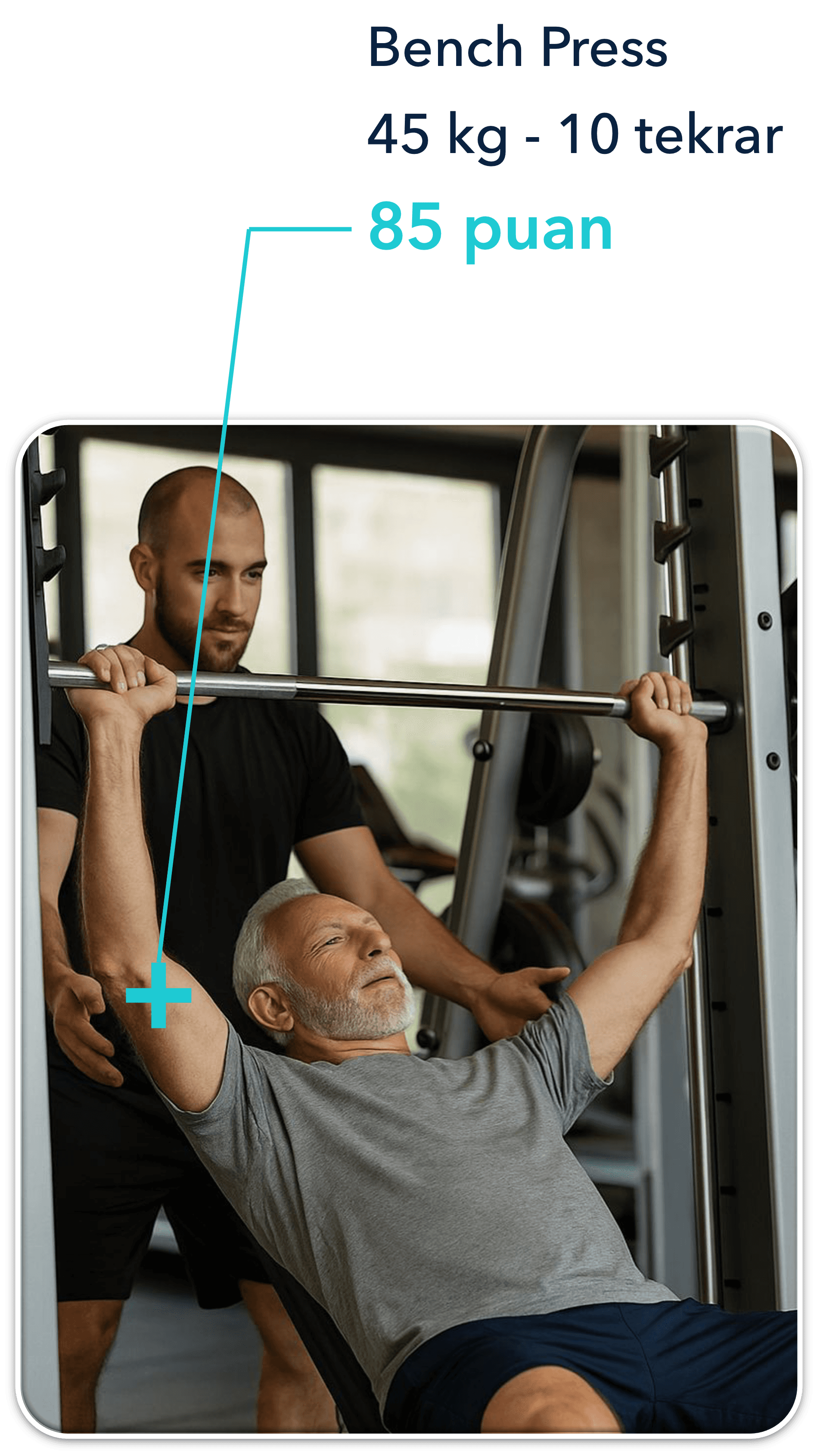 ScoreSoft — our proprietary fitness evaluation software — handles complex calculations and scientifically standardizes the data. FitSkor® then simplifies these results into a score that anyone can understand. Whether you're a 20-year-old woman or a 70-year-old man, a score of 85 reflects the same level of fitness.
