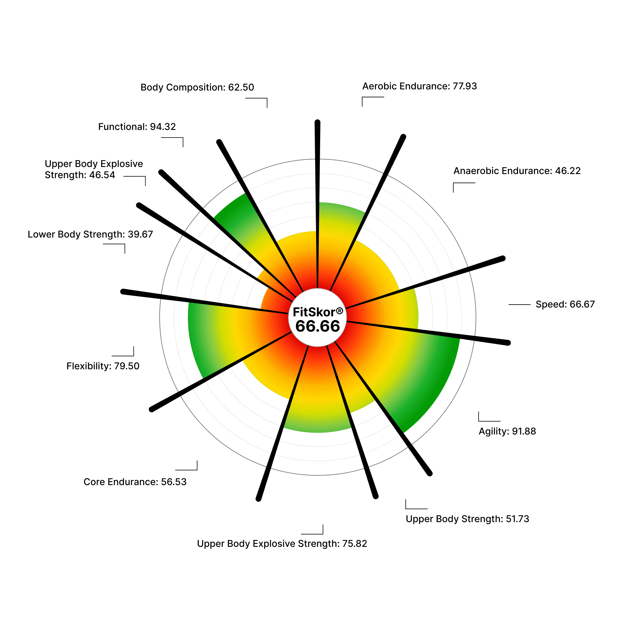 As the world's first and only holistic fitness assessment system, FitSkor® is used in this protocol to specifically evaluate the physical performance of professional tennis players according to the requirements of the sport. The FitSkor® score, presented on a pie chart ranging from 0 to 100, indicates the performance status and development potential in key components such as endurance, speed, agility, strength, and flexibility; thanks to contribution shares assigned to fitness components, it offers a prioritized and intelligent calculation system. This assessment provides the coach with a clear presentation of the athlete's strengths and areas that need improvement, allowing for the creation of personalized training programs. FitSkor® offers a transparent, scientific, and tennis-focused roadmap to enable the athlete to reach their maximum performance level.